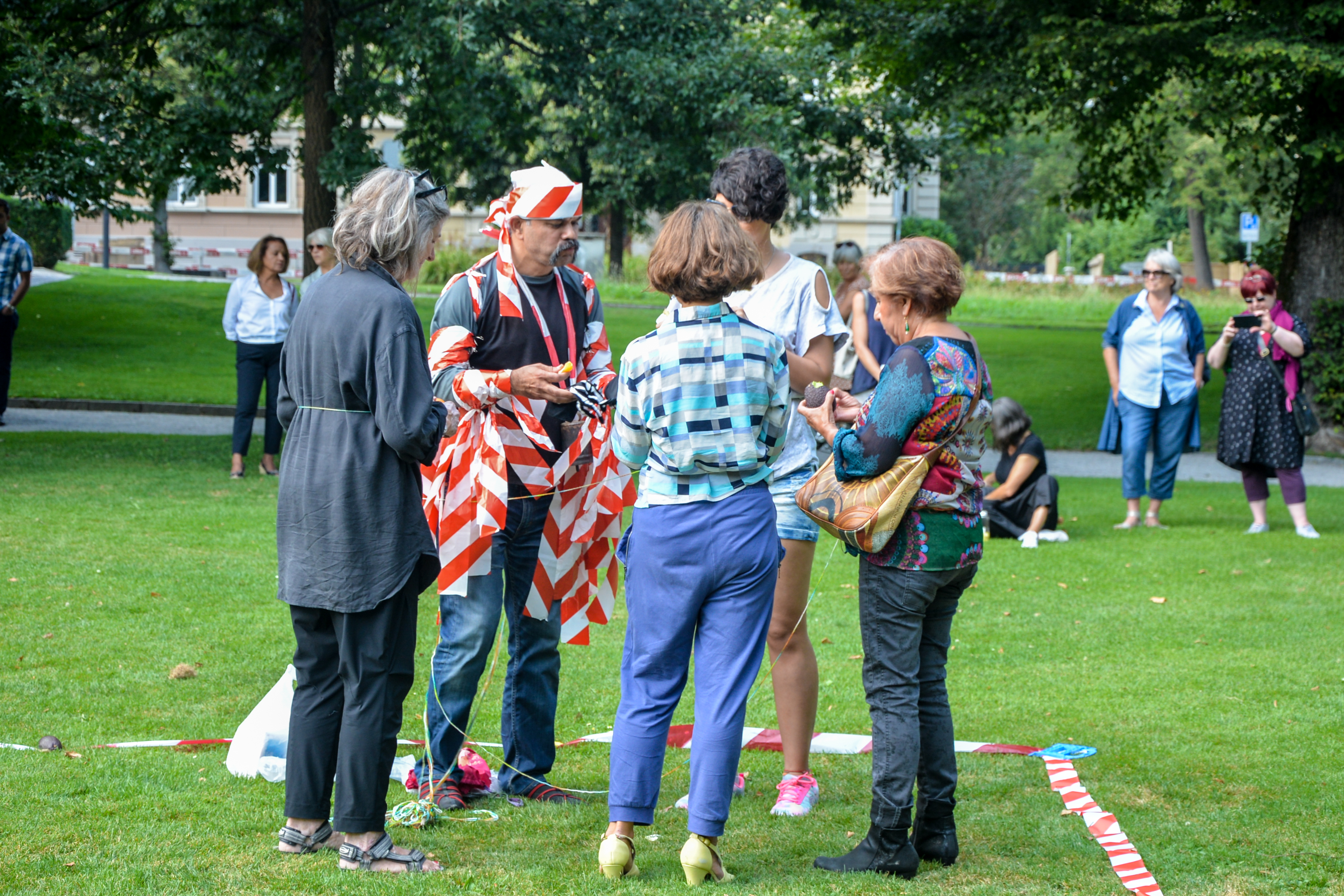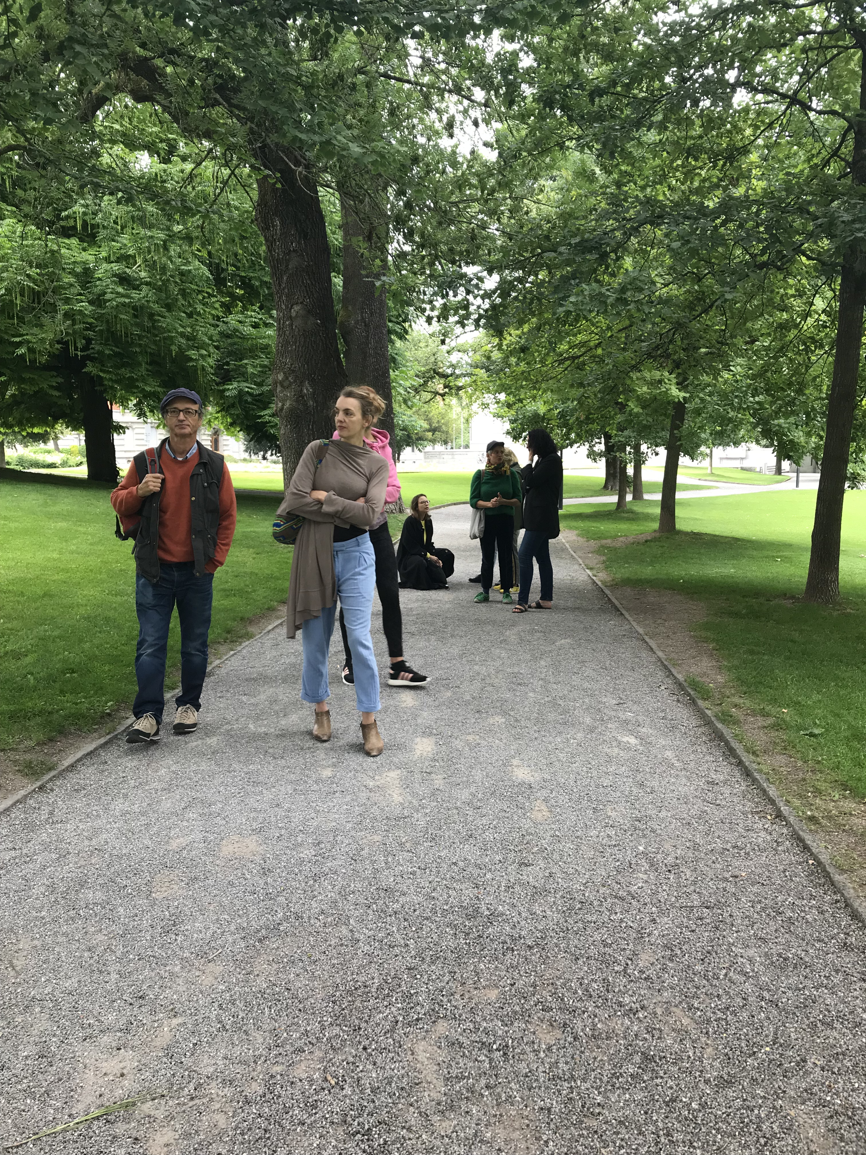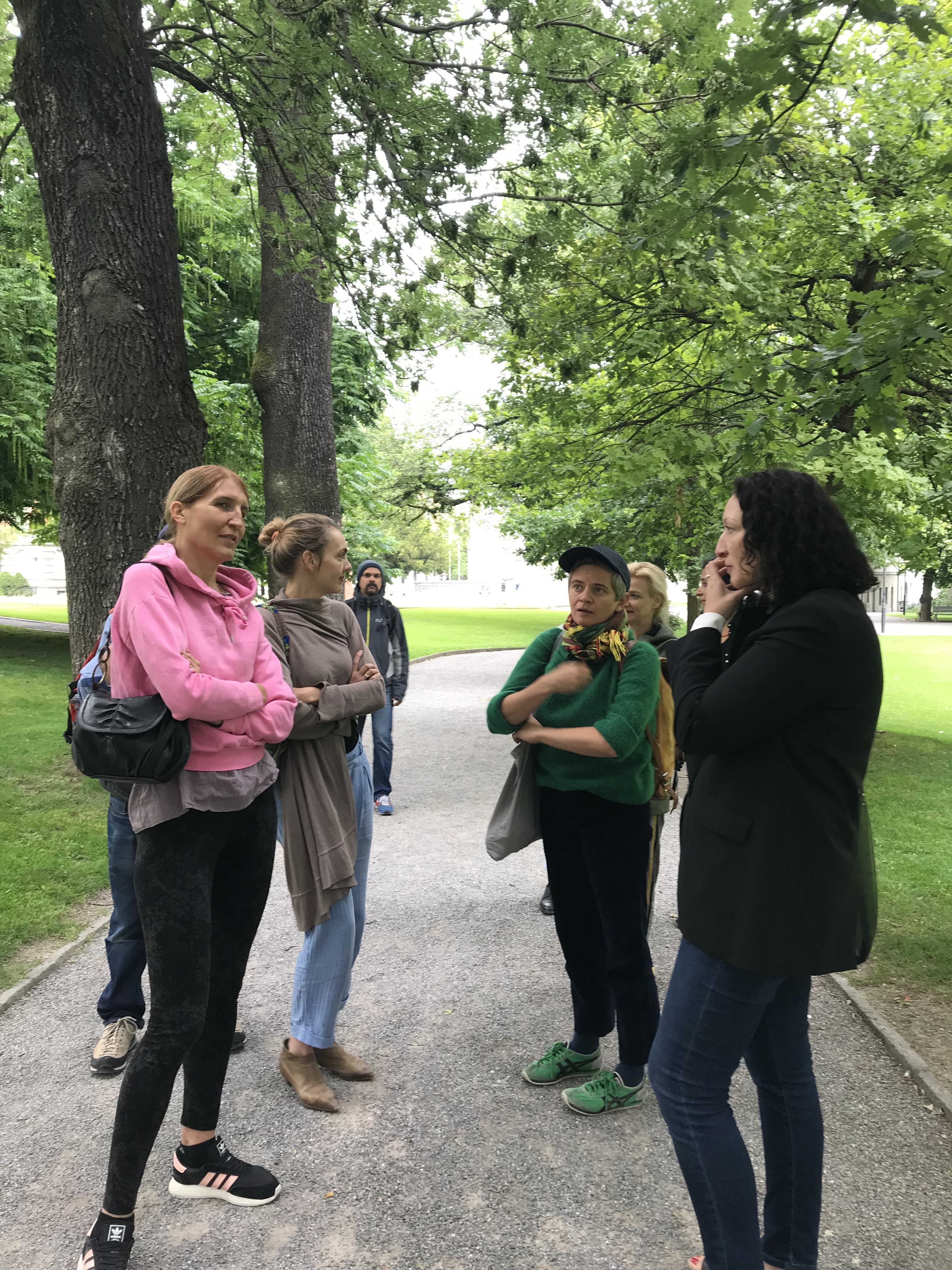 Erste Begehung mit den eingeladenen KünstlerInnen im Stadtpark.
